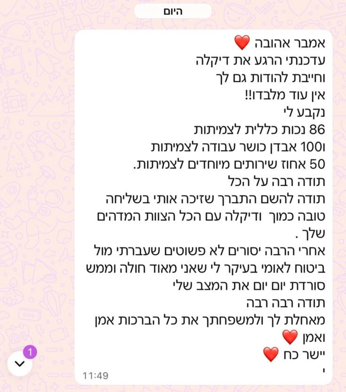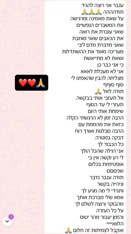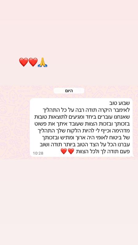 אמבר יקרה❤️המון תודה על ליווי וטיפול נפשי ומקצועי, מסור ועוטף 24/7.בלעדיכם לא הייתי שורדת את הדרך🙏ממליצה בחום אתם פשוט צוות של שחקני נשמה אלופים.