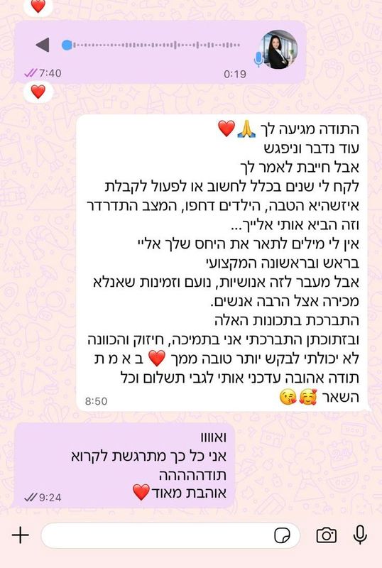 אימבר יקרהתודה לך מכל הלבעל הטיפול המקצועי והמסוראת תותחית, אין כמוךבלעדייך זה לא היה קורהתודה תודה תודהמשי וקארין שנייר ❤️❤️❤️